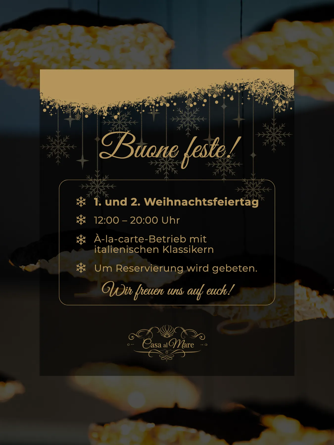 Unser Restaurant bietet den idealen Rahmen für unvergessliche Anlässe. Ob im kleinen Kreis oder in festlichem Rahmen – wir gestalten Ihre Feier mit kulinarischer Vielfalt und dem besonderen Ambiente direkt am Meer.